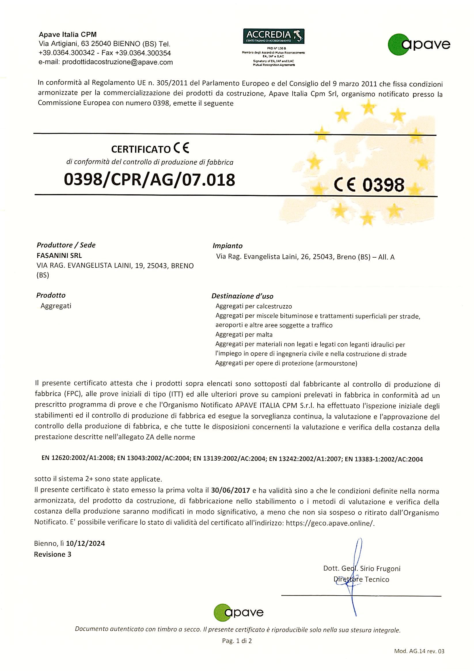 Certificazioni Fasanini