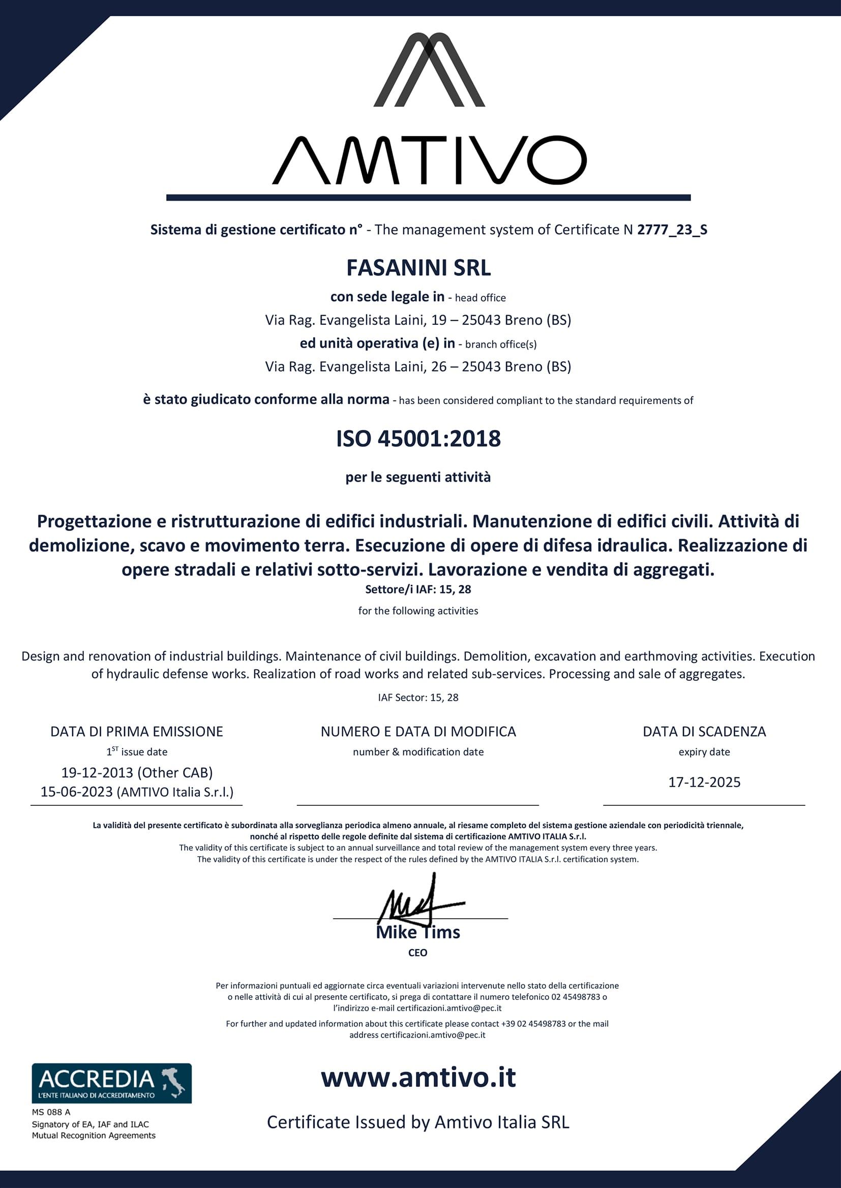 SISTEMA GESTIONE SALUTE E SICUREZZA SUL LAVORO ISO 45001:2018
